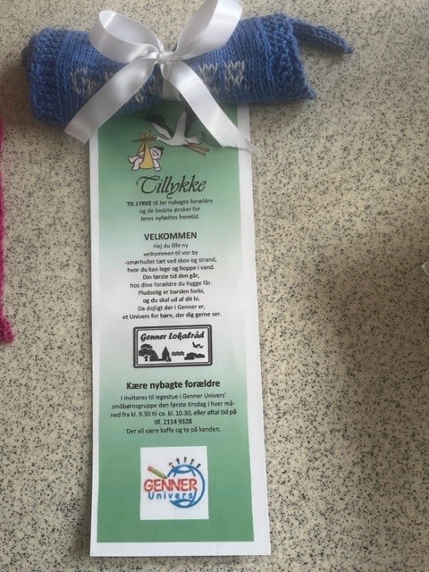 - Enten en repræsentant fra lokalrådet eller naboen til de nybagte forældre afleverer velkomstgaven.